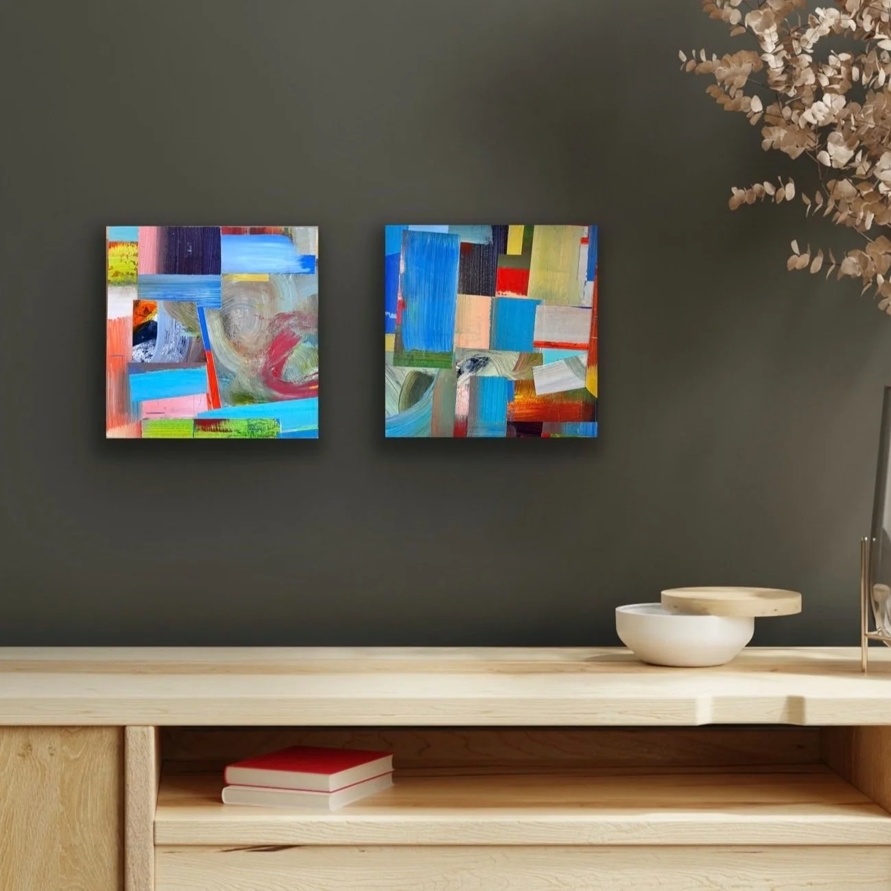 Split Decision captures the moment when opposing ideas don’t cancel each other out — they build something new. Created by painting in two contrasting styles on paper and then cutting and reassembling the pieces into collage, this small work holds both chaos and clarity, gesture and precision. The strong diagonal composition suggests movement, momentum, and maybe even a turning point. It’s a reminder that a painting — like a life — doesn’t have to choose just one direction.