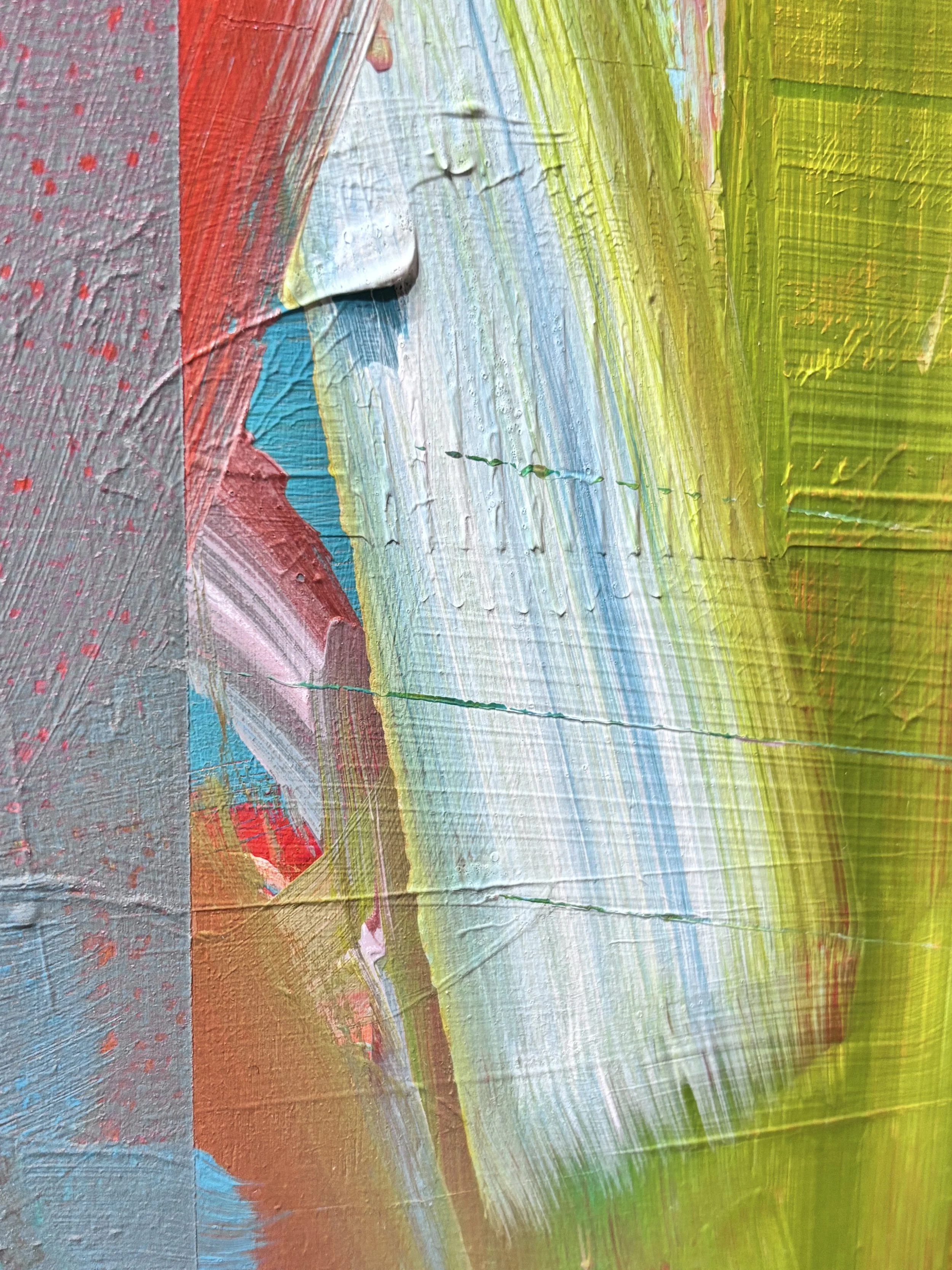 The title speaks to those rare moments when those parts of me feel aligned, when colour, gesture, and form begin to move in the same direction. What emerges is a painting that feels both intentional and exploratory, shifting gently between clarity and ambiguity.